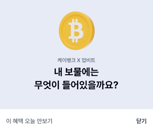 공유받은 링크로 케이뱅크에 가입 후 계좌 개설 → 현금 + 비트코인 교환 코드 지급 (※ 업비트 연동 필요)